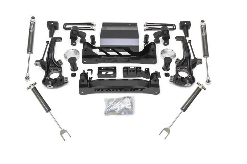 Our all-new 44-30620 6" lift kits with ReadyLIFT Falcon 1.1 Monotube shocks are a great option for the customer who wants a taller, lifted height and the ability to run up to 37" tall tires. The 44-30620 lift kits include laser-cut, fabricated heavy-duty steel cross-members, new cast iron OE-style knuckles with the perfect geometry built-in, torsion arm brackets, and our own front torsion bar relocation brackets that retain the factory position of the torsion bars. These new torsion bar relocation brackets eliminate the traditional lowering of the torsion bars, which can inhibit ground clearance from a lift installation and help to improve the overall driving experience. Additionally, each kit includes crucial differential drop brackets and CV axle spacers, 12" sway bar end links, bump stop extensions, OE style cast iron rear lift blocks, heavy-duty steel skid plate, and finally, Falcon 1.1 Monotube shocks. Features & Benefits: Laser cut, CNC formed heavy-duty front/rear drop crossmembers. Bolt-on installation well almost. Some slight modifications will be required. OE-style cast-iron knuckles have been precisely engineered to provide the ideal geometry to ensure proper alignment and improve the overall driving experience. Increases ground clearance. Includes our new torsion bar relocation brackets that keep the torsion bars in their factory location no need to lower the torsion bars to lift! 6" lift kits - Allows for 37x12.50 on a 9" wide wheel with zero offset. Available with ReadyLIFT Falcon 1.1 Monotube F/R shocks. Includes important differential drop brackets and CNC-machined billet Aluminum CV axle spacers. NOTE: Some GM HD trucks equipped with Tow Package may require custom-length U-bolts purchased separately. Custom U-bolt length may vary by vehicle application. If the ReadyLIFT kit's standard U-bolts are too short, ReadyLIFT recommends locally sourcing custom U-bolts built to each truck's specifications.