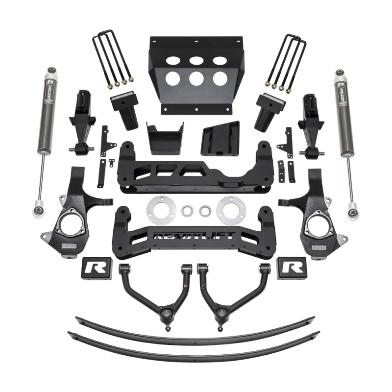 ReadyLIFT introduces a new 9-inch big lift kit for 2014-2018 Chevy Silverado and GMC Sierra 1500 trucks, compatible with models with or without front MagneRide. The 44-34900 lift kit is tailored for GM 1500 trucks (2014-2018) featuring factory Aluminum or Stamped Steel front suspension. It includes new tubular upper control arms, retaining the factory turning radius and minimizing track width increase to less than 0.5" per side. This kit accommodates up to a 37" tall tire on a 9" wide wheel with -12 offset. The kit's unique "clam-shell" style lower strut extension maintains the use of factory struts and avoids strut rotation. These extensions feature TCT lower bushings for a precise pivot point, preserving the factory ride. The new tubular upper control arms with TCT pivot bushings offer enhanced strength compared to OE stamped steel arms. Construction elements include boxed steel front/rear cross members and a 3/16" plate steel front skid plate. It allows for the original front plastic gravel guard, maintaining engine bay protection and proper airflow. The 1/4" boxed plate steel differential drop brackets are designed with a double gusset and boxed center rib to withstand differential torsional twisting. Not suitable for AWD - only 2WD or 4WD. The rear lift is achieved with a rear add-a-leaf spring and 3/16" thick plate steel rear lift blocks, featuring built-in bump stop landings and an offset pin design for axle centering and maintaining proper pinion angle. The lift system includes Falcon 1.1 Monotube rear shocks. Notes: Suitable for up to a 37" tall off-road tire (9" wide wheel, -12 offset), though some aggressive tires might need minor trimming. Not for AWD, GMC Denali 1500 with REAR MagneRide, or models with Rear MagneRide. Front MagneRide compatible and usable on trucks with factory Aluminum front suspension. The kit comes with ReadyLIFT's ReadyGuard Powertrain Warranty.