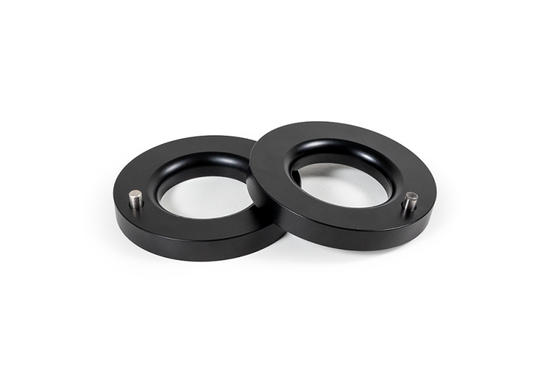 ReadyLIFT offers a new leveling kit to properly enhance the stance and driving quality of the 2021-2023 Ram 1500 TRX. The 66-11150 kit provides 1.5" of front leveling lift. Like the body design and monster powertrain, the suspension of the new Ram TRX features some unique elements that require a different leveling solution than a traditional Ram 1500 would typically receive. These differences were tackled by our engineers. As a result, we now offer a CNC machined billet Aluminum construction leveling kit. Features and Benefits: 2021-2023 Ram 1500 TRX 1.5-inch Leveling Kit Front pre-load spacer kit CNC machined billet Aluminum construction Max tire: 35x12.50 on a 20x9 +18 offset NOTE: This kit fits Ram 1500 TRX only. Not for use on Ram 1500 TRX equipped with aftermarket coilovers. The use of pre-load spacer technology to achieve front lift is safe and effective; however, this method may deliver a firmer ride than the factory tuning.