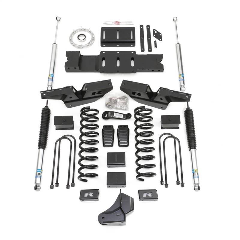 The new RAM HD trucks are more popular than ever and the ReadyLIFT 6" lift kit for 5th generation Ram 2500 HD trucks are extremely popular. What more could we do for RAM owners? How about engineering a 6" solution for the RAM 3500 HD trucks? That is exactly what ReadyLIFT has done by adding a new CNC-machined billet Aluminum transfer case clocking ring to improve driveline angle? Well, that's exactly what we did for this all-new Ram 3500 application. We designed an application-specific lift kit and included an innovative Driveline Indexing System (DIS) with a transfer case clocking ring, OEM output shaft seal, and adjustable transmission crossmember. Why go to all that trouble to achieve 6" Ram 3500 lift? Some Ram HD trucks can experience a slight vibration after lifting due to driveline angle sensitivity. Our new 49-19620 6" lift kit addresses that inherent (albeit infrequent) driveline system phenomenon with the addition of our DIS a heavy-duty transfer case clocking [indexing] ring and new transmission crossmember-positioning the transmission and pinion position for a smooth driving experience on or off-road. Kit 49-19620 includes the new DIS re-positioning components, heavy-duty and great riding 6" lift front springs, 5" lift rear taper blocks, heavy-duty radius arm drop brackets, heavy-duty fabricated steel front, and rear track bar brackets, dropped cast iron pitman arm, front/rear sway bar relocation brackets, and bump stop extensions preventing over-compression of the new Bilstein 5100 series front/rear shocks. *Kit will not fit any models with the standard output 6.7L diesel motor, HEMI Gasoline engine, dually models, Classic models, and any automatic-leveling rear air suspension models.