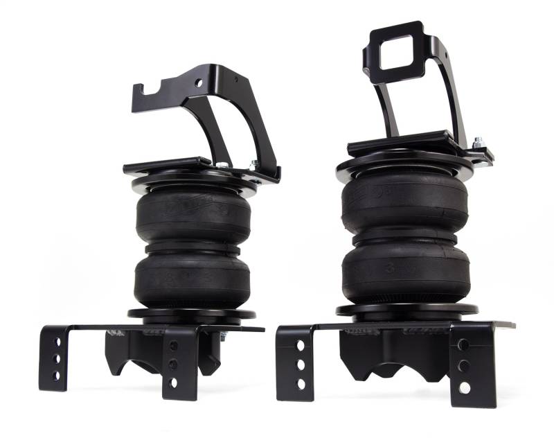 LoadLifter 5000 ULTIMATE with internal jounce bumper LoadLifter 5000 ULTIMATE adjustable air spring kits feature all of the benefits of our heaviest rated air spring with the addition of an internal jounce bumper inside the spring for the ultimate in ride comfort. An Air Lift exclusive product! Fits vehicles with in-bed hitches. Tow and haul the heaviest loads with safety and comfort with LoadLifter 5000 ULTIMATE. Works with vehicle's leaf springs to provide up to 5,000 lbs. of rear load leveling capacity and keeps the vehicle riding stable, level and comfortable whether loaded or unloaded. Fully adjustable from 5 to 100 PSI. The closed-cell urethane foam jounce bumper inside the ULTIMATE air springs provide a cushion of air that absorbs shock, eliminates harsh jarring on rough roads and protects vehicles carrying heavy loads. Never bottom out again with the ULTIMATE! LoadLifter 5000 ULTIMATE air springs are maintenance free! Safely run with zero air pressure because of the internal jounce bumper. Replaces factory jounce bumper that is sometimes removed when adding air springs. Requires no drilling into frame! Includes industry-exclusive 60 Day No Questions Money Back Guarantee! Includes the most comprehensive Lifetime Warranty in the industry---covers all kit contents including brackets, fittings and air line. Air springs are built like a tire and are reinforced by durable, 2-ply fabric for maximum strength. Exclusive upper and lower roll plates included. Protect the springs from sharp edges, such as brackets or the frame. The kit includes 2 air springs, brackets, air lines, Schrader valve and all of the hardware needed for installation. Includes fully illustrated instruction manual. Add an Air Lift on-board air compressor system to inflate and deflate air springs with the touch of a button from inside or outside of the vehicle. Exclusive internal jounce bumper inside springs absorbs shock Up to 5,000 lbs. of load-leveling capacity (Note: Do not exceed vehicle's GVWR) Maintenance free! Run safely with zero air pressure. Eliminates harsh jarring on rough roads Air adjustable from 5 to 100 PSI