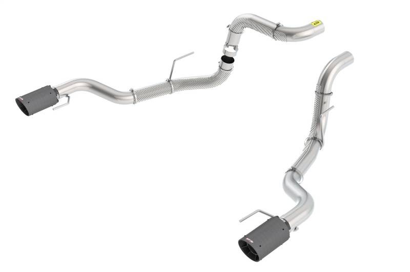 Tail Pipes These 3" diameter tail pipes are designed to work with either BORLA® 60637, 60638, 60731, or 60732 mid-sections / muffler assemblies, or the Original Equipment (O.E.) mid-section / muffler assembly. They feature single 4.5" round carbon fiber tips with black anodized centers on each tail pipe. Tail pipe assemblies with bright chrome on T-304 stainless steel tips, and black chrome on T-304 stainless steel tips are also available. Includes heat shields on pipes. Built from premium T-304 stainless steel, superior to T-400 series knockoffs (such as 409), to give you the absolute best in performance and durability. Ultra-smooth mandrel bends ensure maximum flow & power, and precision computer numerical control (CNC) manufacturing ensures an accurate fit. Best of all, BORLA® stands behind our tail pipes with a Million-Mile Warranty. Just what you’d expect from the world’s most experienced (and most winning) exhaust brand. Use with BORLA® 60637, 60638, 60731, or 60732 Mid-Sections, or O.E. Mid-Section