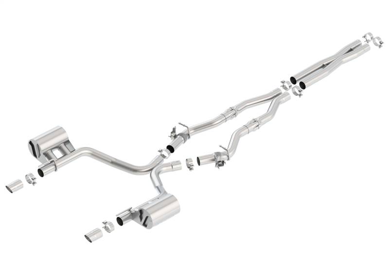 Cat-Back Exhaust System - ATAK® This system INCLUDES functioning MDS (multiple-displacement system) valves. Tips are NOT included. Reuse factory valance / tips or optional Borla tips. On 2019-2022 Charger R/T Vehicles ADD Connecting Pipes 60726 to reuse O.E. Tips that have a female ball flare inlet or optional Borla tips 60729, 60729BC, 60729BC. System contains a merge X-Pipe for improved performance. System also features Borla 's Polyphonic Harmonizer Technology which utilizes patented units that contain pipes of different diameters and lengths to create multiple exhaust notes that harmonize to deliver a clean, rich, full-bodied sound to the Borla mufflers. The mufflers then enhance this sound to the character and volume appropriate for our Touring, S-Type and ATAK systems. Borla Cat-Back & Axle-Back exhaust systems feature patented straight-through and multi-core technology to unleash hidden horsepower. Increased exhaust velocity adds power, driving excitement, fuel economy, and the distinctive Borla Sound of Power respected by motoring enthusiasts everywhere. Each system is built from premium T-304 austenitic stainless steel, superior to T-400 series knockoffs (such as 409), to give you the absolute best in performance and durability. Ultra-smooth mandrel bends ensure maximum flow & power, and precision computer numerical control (CNC) manufacturing ensures an accurate fit. Best of all, Borla stands behind every system with a Million-Mile Warranty. Just what you'd expect from the world's most experienced (and most winning) exhaust brand. Fits vehicles with valves built into the O.E. exhaust This system INCLUDES Active Exhaust Valves System contains a Merge X-Pipe & Polyphonic Harmonizer technology 19-'22 R/T ADD Adapters 60726 to reuse O.E. Tips or optional Borla tips 60729, 60729BC, 60729CFBA Tips NOT included, use factory Bezel/ Valance, or optional Borla tips