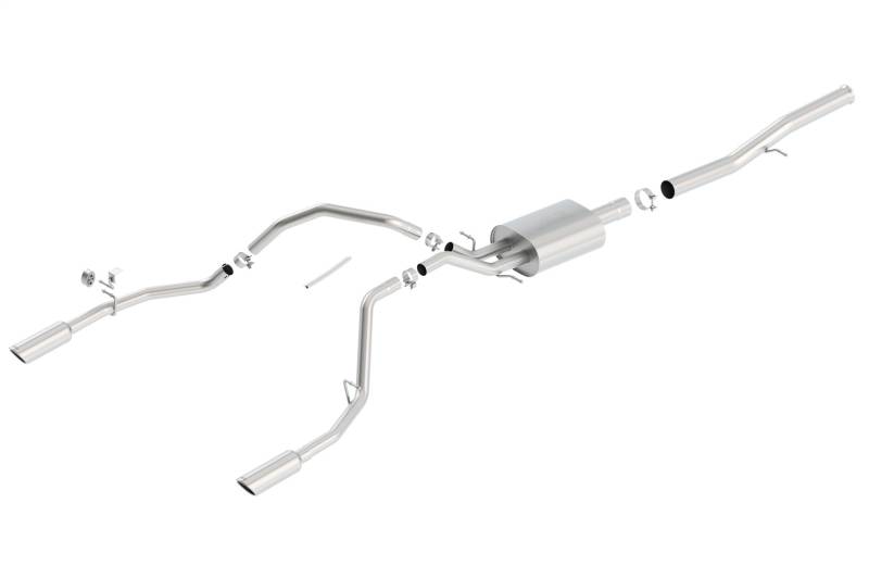 Cat-Back(tm) Exhaust System - S-Type Features bright chrome on T-304 stainless steel tips. Borla(r) Cat-Back(tm) & Axle-Back exhaust systems feature patented straight-through and multi-core technology designed to unleash hidden horsepower. Increased exhaust velocity adds power, driving excitement, fuel economy, and the distinctive Borla(r) Sound of Power respected by motoring enthusiasts everywhere. Each system is built from premium T-304 stainless steel, superior to T-400 series knockoffs (such as 409), to give you the absolute best in performance and durability. Ultra-smooth mandrel bends ensure maximum flow & power, and precision computer-controlled CNC manufacturing ensures an accurate fit. Best of all, Borla(r) stands behind every system with a Million-Mile Warranty. Just what you'd expect from the world's most experienced (and most winning) exhaust brand.