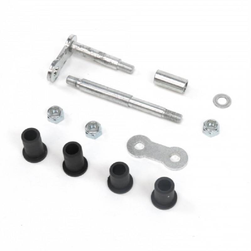 Helix Spring Shackle Kit for 1935-1948 Ford with 1.75 spring width and 3/4 spring eye diameter have a 2 extended shackle bolt for shock mount capability. With attractive gold zinc Iridite finish, Helix spring shackles are not only pleasing to the eye, they are superior to the OEM spring shackles with their improved and updated materials & design while retaining a vintage appeal and appearance. Shackle construction is durable lightweight steel with 4 long-wear nylon bushings, 3 nylon locking nuts, and a steel bushing for the shock mount. Dont get shackled by the competitions poor quality, cheap inferior materials; make Helix your choice for superior grade quality spring shackles today! Stay ahead of the pack with Helix Suspension.