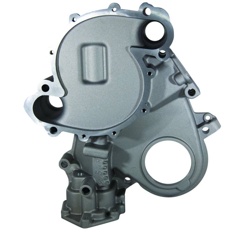 Engine Timing Chain Cover This die-cast timing chain cover is 100% new and optimizes the OEM design. Crankshaft oil seal included.