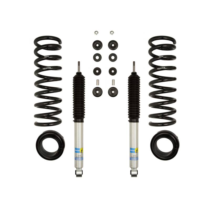 B8 5112 - Suspension Leveling Kit Bilstein B8 5112 suspension kit is a high performance leveling kit which provides more ground clearance, allows for larger tires, and increases wheel travel. The Bilstein B8 5112 suspension kit is for front applications and consists of (2) B8 5100 shock absorbers combined with (2) matched coil springs. This simple yet effective kit will bolt into the factory locations with no modifications. The Bilstein B8 5112 suspension kit provides a smooth and stable ride both on and off-road. 46mm monotube design ensures consistent, fade-free performance in all conditions Patented digressive valving instantly reacts to changing surface conditions Vehicle specific tuning