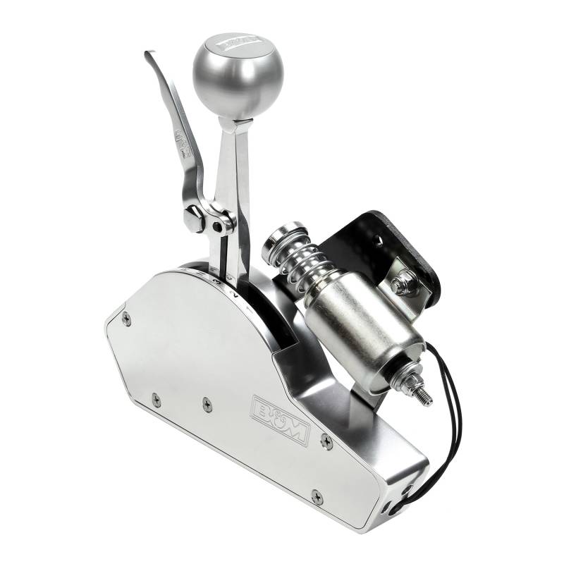 This B&M electric shift solenoid fits Pro Bandit and Street Bandit shifters. Built with 5052 aluminum brackets and heavy duty solenoids to provide positive and consistent 1-2 shifts. The brackets are mil-spec (military specification) black anodized with laser engraving for a clean, stealthy appearance and the low amperage draw will cause no charging concerns when the rounds get faster.