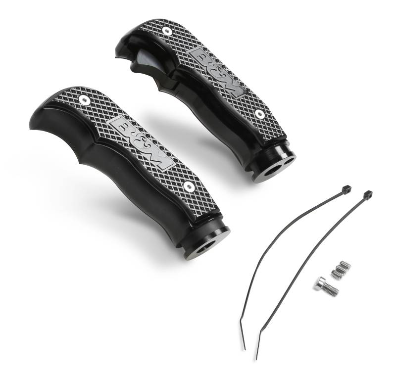 The B&M Magnum Grip JL shift handle set is designed to replace the factory automatic shift knob and transfer case knob on all 2018-2023 Jeep Wrangler JL 2 & 4 door models along with the 2020-2023 Jeep Gladiator trucks equipped with an automatic transmission. The shift handles are modeled around the popular Magnum Grip design used on B&M race shifters for an aggressive modern look with a functional feel and fit. Features include CNC machined T6061 billet aluminum, black anodizing for a great-looking durable finish, and replaceable polycarbonate side grip plates with a textured diamond pattern for a sure grip. The auto handle retains the lockout safety feature with a machined trigger to engage Park and Reverse. Be sure to check out our optional side grip plates including a pair made from real Rosewood, along with all the optional colors to choose from to accent your Jeep's interior. Includes all necessary hardware and easy-to-follow instructions for a quick and simple installation you can do at home.