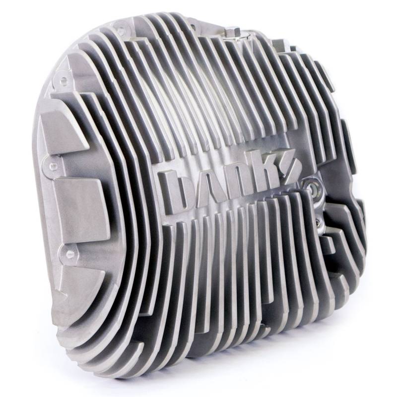 Key Highlights: New patented design features Ram-Air scoops for fastest cooling. Provides cold high velocity air, overcoming “dead air zone” behind differential. Scoops force air up and into massive heat radiation fins. Engineered to break-away if snagged on an obstacle. Banks cools 5X better than flat-back covers in on-road towing tests over the same road, same weather, operator and vehicle. Cools 118% better than flat-backs in 200hp 60mph sustained tests. Dry-mount high-pressure silicone O-ring seal. No messy RTV clean!. Internal fins transfer heat through the cover into the external fins. Clears spare tire heat shield, Panhard bars and other components. Does not sacrifice any ground clearance. Limited Lifetime Warranty Patented design cools 5X better than flat-backs