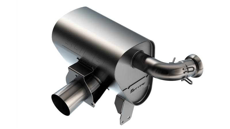 Axle-Back Exhaust System - S-Type This 2.25" inlet 3.5" outlet BORLA® system for the Can-Am Maverick is designed to wit'stand serious off-road action. The Original Equipment (O.E.) Spark Arrester is reused so this system meets United States Forest Service (USFS) specifications so you can off-road safely. System does not remove or alter any O.E. Emission Control Devices and is 50 State Emissions Legal. The system has a flanged inlet pipe and bolts up to the exhaust head pipe. The system features the S-Type sound that gives you a mild sound of power with no drone. Available in multiple sound levels and multiple finishes. Entire assembly is coated black with high temperature finish. Tip NOT included. Reuse O.E. tip mounting hardware. Reuse O.E. tip or purchase optional BORLA® tips, black coated T-304 stainless steel tip 60733CB, or brushed T-304 stainless steel tip 60733SB. BORLA® Cat-Back & Axle-Back exhaust systems feature patented straight-through and multi-core technology to unleash hidden horsepower. Increased exhaust velocity adds power, driving excitement, fuel economy, and the distinctive BORLA® Sound of Power respected by enthusiasts everywhere. Each system is built from premium, high-quality T-304 austenitic stainless steel, superior to T-400 series knockoffs (such as 409), to give you the absolute best in performance and durability. Ultra-smooth mandrel bends ensure maximum flow & power, and precision computer numerical control (CNC) manufacturing ensures an accurate fit. Best of all, BORLA® stands behind every system with a Million-Mile Warranty. Just what you‘d expect from the world‘s most experienced (and most winning) exhaust brand. The O.E. Spark Arrester is reused so this this system meets United States Forest Service (USFS) specifications System does not remove or alter any O.E. Emission Control Devices and is 50 State Emissions Legal Entire assembly is coated black with high temperature finish Tip NOT included. Reuse O.E. tip or purchase optional Borla tip Reuse O.E. tip mounting hardware