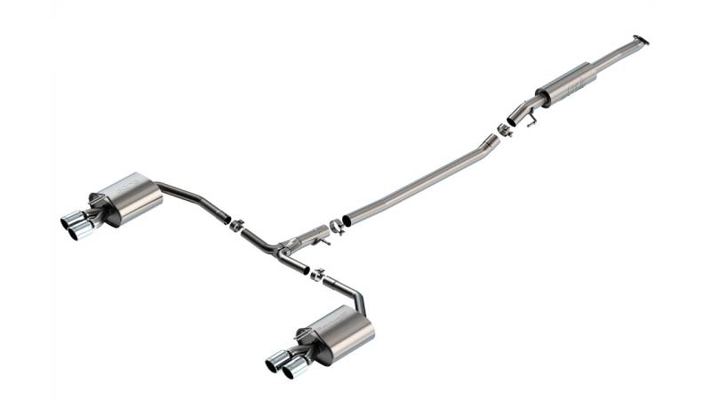 Cat-Back Exhaust System - S-Type Borla(r) has developed an exhaust system for the Hyundai Sonata N Line. Our Cat-Back(tm) system has been tuned for flow and sound specifically for the 2.5L 4 cylinder engine in the Sonata N Line. The S-Type sound level delivers a more aggressive and sporty sound without any drone in the cabin. This system features quad 3.5" bright chrome on T-304 stainless steel tips, but is also available in a black chrome finish. Ultra-smooth mandrel bends ensure maximum flow & power, and precision computer numerical control (CNC) manufacturing ensures an accurate fit. Each Borla(r) Exhaust System is built from premium T-304 series stainless steel to give you the absolute best in performance and durability. We strive to provide you with the highest quality products and stand behind our systems with a Million-Mile Warranty. System Features: Cat-Back(tm) System S-Type Sound Level No-Drone 3.5" Bright Chrome On T-304 Stainless Steel Tips Bolt-On Installation T-304 Stainless Steel Million-Mile Warranty