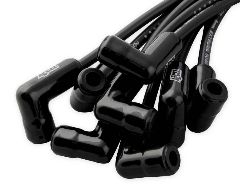 Do you want to put headers on your vehicle, but are afraid you may cook the spark plug wires? Just looking for a nice upgrade for your stock spark plug wires? If you answered yes to any of these questions, ACCEL has the wire set for you.\nACCEL Extreme 9000 Ceramic Boot Wires feature ultra high-temperature, double silicone, 8mm, 500 ohms/ft Ferro-Spiral core wire developed for performance use. The wire is rated at 600 degrees Fahrenheit peak and the black Ceramic boots wit'stand up to 2,000 degrees. Great for running headers with close tolerances, an engine bay with little room or an application with high under-hood temps. ACCEL Extreme 9000 wires offer excellent energy delivery to the spark plugs through stainless steel spark plug terminals, while providing the highest level of RFI/EMI suppression.