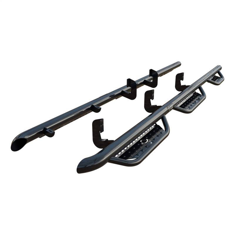Strong and dependable, Ranch Hand Legend running steps are constructed from 3 in. pipe and 3/16 in. thick brackets for enhanced security to the truck. The steps are frame-mounted in factory locations for easy installation with no drilling required on most models. The front step plates are punched with the official cowboy hat Ranch Hand logo, and all steps have raised steel treads to promote reliable traction when entering or exiting your truck. To maximize safety, Ranch Hand running steps have a vehicle-specific configuration to match the door layout and promote optimal safety and convenience. They feature 1-1/2 in. diameter, drop-down tubes that hold 4 in. wide, 12-gauge punched plates for the perfect platform for stepping into your truck with ease. Each set of steps is finished with a tough, dual-layer A-coat and gloss black powder coating that provides exceptional rust resistance for long-lasting dependability. This particular set of Ranch Hand Legend running steps fits select model years of the Chevrolet Silverado 2500 HD, Chevrolet Silverado 3500 HD, GMC Sierra 2500 HD and GMC Sierra 3500 HD (see application info to verify fitment).