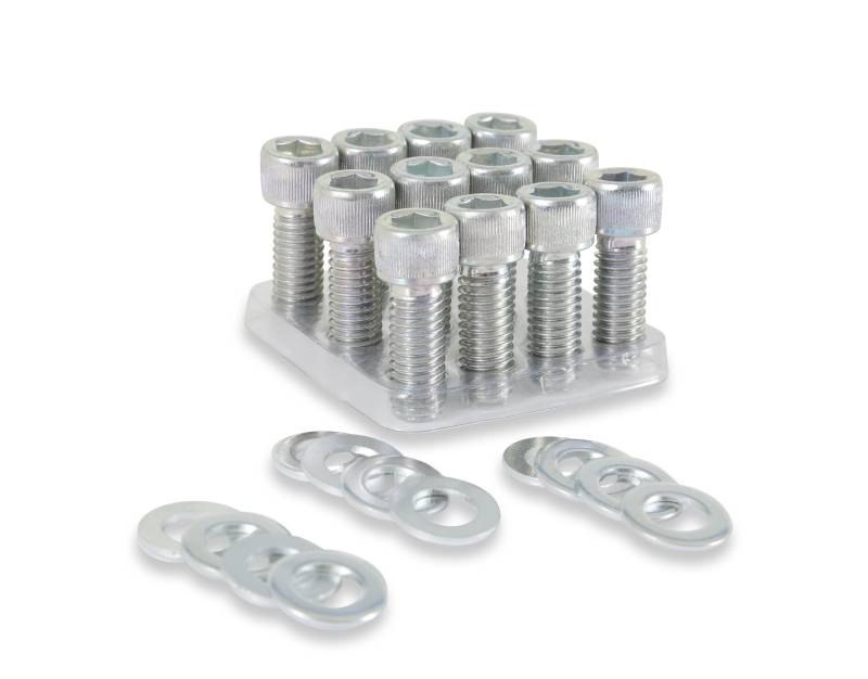 These grade 5 hex head bolts are brite zinc plated for protection and appearance. Hardened flat washers provide uniform torque & prevent galling on aluminum manifolds. Includes twelve (12) 3/8 inch-16 x 1 inch bolts & washers