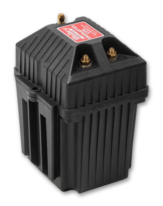 The Mallory Promaster Classic series ignition coil is designed to meet today's specialized ignition requirements. This coil features a faster rise time and increased spark duration (compared to stock) to increase performance. It has a glass-filled polyester case and oil-filled construction to ensure a long life and no energy loss from arcing. This coil also offers excellent wire retention with a spark plug type secondary post, and brass contact terminals.
