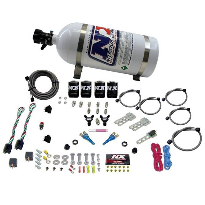 SPORT COMPACT EFI DUAL STAGE (35-75) X 2 WITH 10LB BOTTLE Want more horsepower without the hassle and expense of going direct port? Then the NX dual stage nitrous systems are the way to go. Having two stages means you double your power options at the click of a switch. The dual ?Shark nozzles give adjustability from 50 to 300 wheel horsepower in 25hp increments. Systems come complete with 10lb nitrous bottle, stainless bottle bracket, Lightning solenoids, extra long stainless braided N2O line, and all necessary hardware to complete the installation