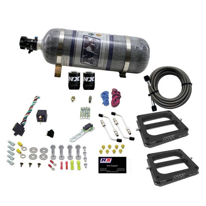 DUAL DOM/GAS (100-200-300-400-500HP) WITH COMPOSITE BOTTLE The conventional Pro Power is the perfect mid level nitrous system for the budget minded sportsman racer. These systems feature the most advanced technology using the conventional spraybarless design. The Phase 3 series plates are the ?Next Generation in nitrous performance and reliability. This new innovation in nitrous plate technology provides superior distribution and outstanding atomization. With no spray bars to sag, split, block airflow, or damage this is truly the ?Next Generation in nitrous plate technology. Systems come complete and include limited lifetime guaranteed Lightning solenoids, heavy duty 40 amp relay, COMPOSITE BOTTLE, stainless bottle brackets, and extra long supply line.