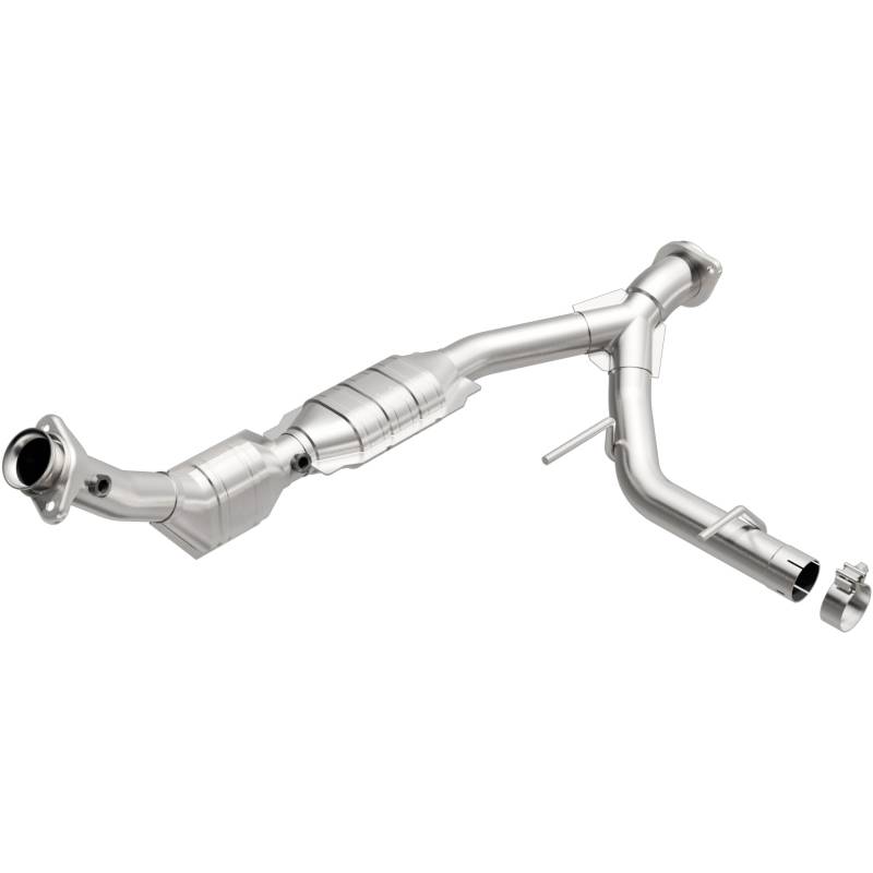 HM Grade Direct-Fit Catalytic Converter MagnaFlow HM Grade Federal/EPA Compliant Direct-Fit Catalytic Converter 24414 helps keep the check engine light off. DIY installation is easy with the proper tools (no cutting or welding required). With features including mandrel-bent tubing to eliminate flow restrictions and stainless steel construction to resist corrosion, you can have confidence in the quality of this catalytic converter. Using state-of-the-art 3D scanning systems in the design process, the MagnaFlow metrology department ensures this new part to fit and function like the original equipment. This direct-fit catalytic converter is designed specifically for the 2003-2004 Ford Expedition and interchanges with OE parts 4L1Z-5E212-BB and 3L1Z-5E212-CB. Hardware is included to eliminate the hassle of working with corroded factory parts. This replacement part is designed to meet or exceed Federal emissions requirements set forth by the EPA, complying with legal standards for OBDII Federally registered vehicles with Federal/EPA Emission systems. Torca AccuSeal Exhaust Clamps provide a full 360-degree equally distributed clamping force preventing pipe distortion while creating a complete seal and maintaining serviceability Your trusted source for EPA-compliant catalytic converters, providing assurance of genuine compliance while delivering quality that will last Mandrel bent tubing retains OEM-like design and geometry, ensuring smooth exhaust flow for peak fuel economy and engine operation OE-sized barbed exhaust hangers made from corrosion-resistant 410 stainless steel, designed to reduce noise and vibration High strength 16 gauge 409 stainless steel tubing for exceptional corrosion resistance and maximum service life