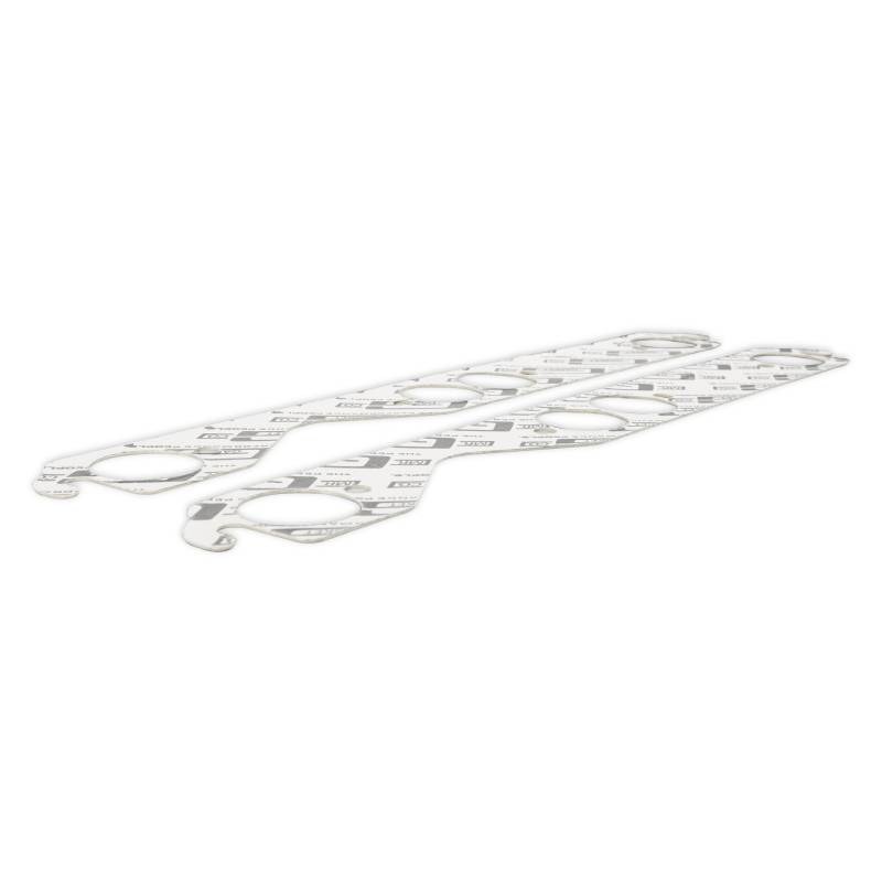 Manufactured from high-temperature composite exhaust material. Provides maximum torque retention to eliminate gasket failure. Can be trimmed if necessary for modified port applications. Precision die cut for an excellent fit. For OE replacement, high-performance street, drag race and oval track.