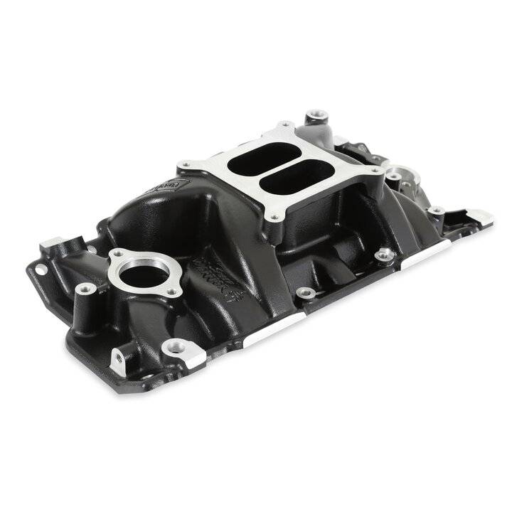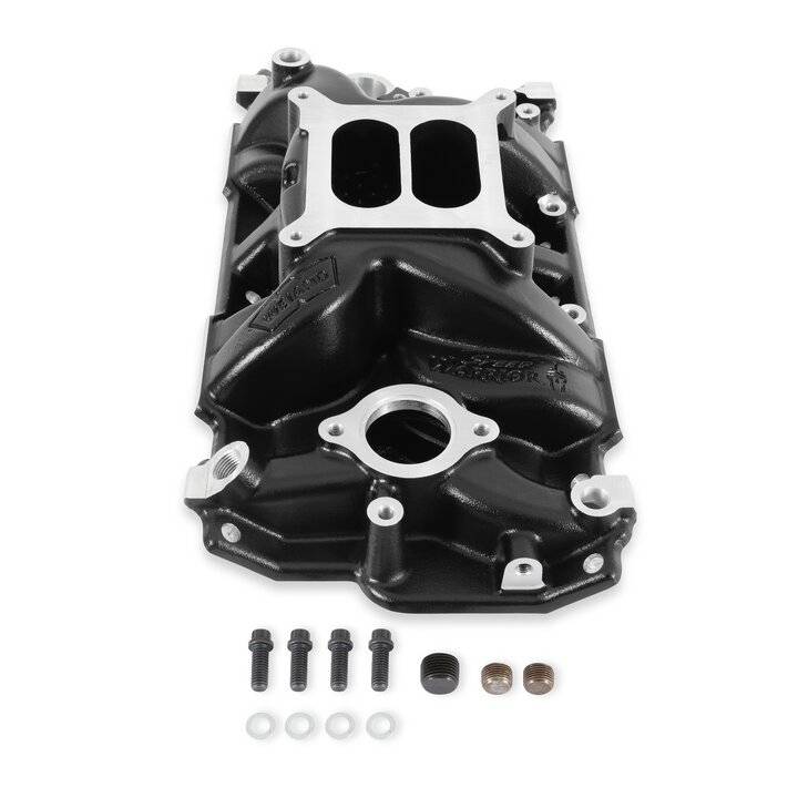 Weiand developed the first ever aluminum intake manifold in 1937. Thirty years later Weiand developed complete blower drives for the GMC 6–71 supercharger. Today, Weiand is still at the forefront of intake manifold and blower development as well as high flow water pumps. To make more power you have to get more air to your engine. Look to Weiand as your power source!\nThe Weiand Speed Warrior features long, separated runners for bottom-end and mid-range power, plus a special runner design and larger plenum to flow the air needed for high-rpm horsepower. All of this usable power makes this intake perfect for your street and strip hot rod!