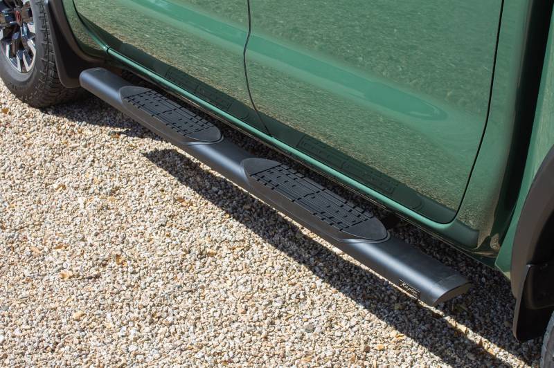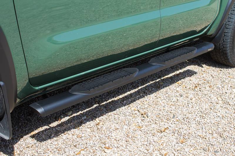 Raptor Series Oval Running Boards Black Textured Aluminum - Part# 2007-0589BT Raptor Series Oval Running Boards offer a modernized look with their unique angled end caps. They feature a wide 5-inch slip resistant step surface for easy entry into the vehicle. Their lightweight, corrosion-resistant aircraft-grade aluminum construction with a durable black textured finish provides strength without added weight. The kit includes driver and passenger boards, brackets, and hardware. Quick no-drill install 5-inch wide step surface Constructed of lightweight aluminum Adjustable Slide Track system for custom fit Brackets rated for 400 lbs per side