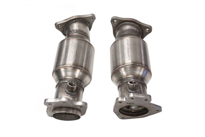 CORSA Performance C8 High Flow Catalytic Converters are EPA Compliant and designed for Modern Muscle high horsepower applications. Each converter has been tested and proven to support application usage up to 850 horsepower per catalyst and 1700 horsepower total. CORSA's high flow catalytic converters will mount directly to CORSA Performance or Stock systems to greatly increase sound and flow.