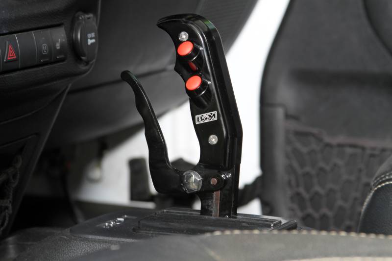 The new Stealth Magnum Grip Pro-Stick Off-Road shifter is a direct-fit console shifter designed to fit 2012-2018 Jeep Wrangler JK models with an automatic shifter in the factory center console. The Off-Road gate plate offers many functions, one of them being while holding the trigger back, it allows you to quickly and easily shift back and forth from Drive to Reverse, creating a rocking motion to get you out of difficult off-road situations. And for normal crawling, you won't ever have to worry about accidentally bumping the shifter out of gear. The side buttons in the grip handle allow you to manually shift up or down when in drive. See the installation instructions for the various shift functions. The CNC machined billet aluminum Magnum Grip handle has an ergonomic fit & feel and features replaceable side grip plates along with a MIL-Spec black anodized finish for good looks and durability. The B&M console cover has a clean factory look and includes an easy to reach overdrive switch along with a lighted gear indicator lens. Includes a Super Duty shift cable, all brackets, levers and easy to follow instructions.