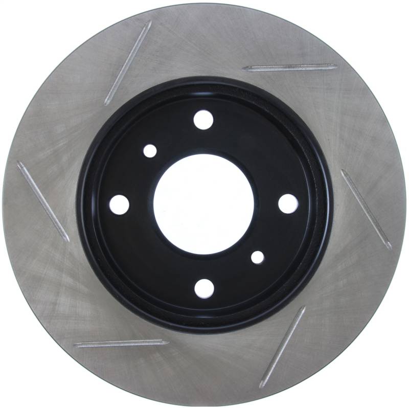 StopTech Slotted Sport Rotors are 1-piece direct replacement brake discs for factory brake systems and stock calipers that look great behind your wheels - and offer significantly improved braking performance. The unique slotting aids with heat and brake dust dispersal; prevents glazing of the pads; adds bite and improves wet and dry braking performance. Built to last; the black e-coating provides protection from corrosion and the high carbon metallurgy (in most applications) offers quieter operation; better crack resistance and increased performance.