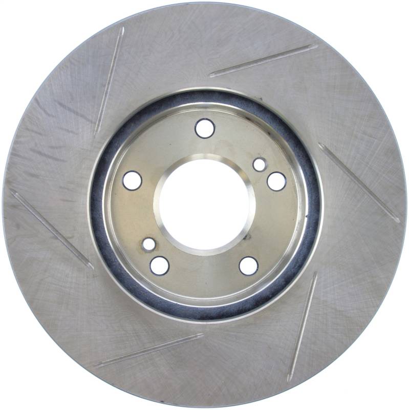 StopTech Slotted Sport Rotors are 1-piece direct replacement brake discs for factory brake systems and stock calipers that look great behind your wheels - and offer significantly improved braking performance. The unique slotting aids with heat and brake dust dispersal; prevents glazing of the pads; adds bite and improves wet and dry braking performance. Built to last; the black e-coating provides protection from corrosion and the high carbon metallurgy (in most applications) offers quieter operation; better crack resistance and increased performance.