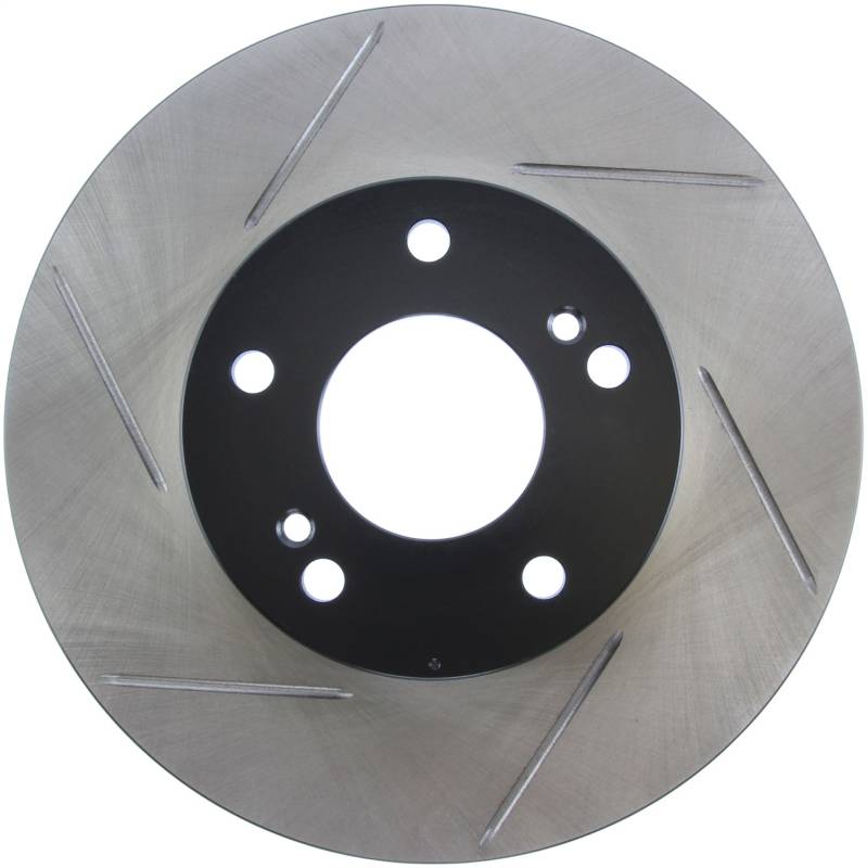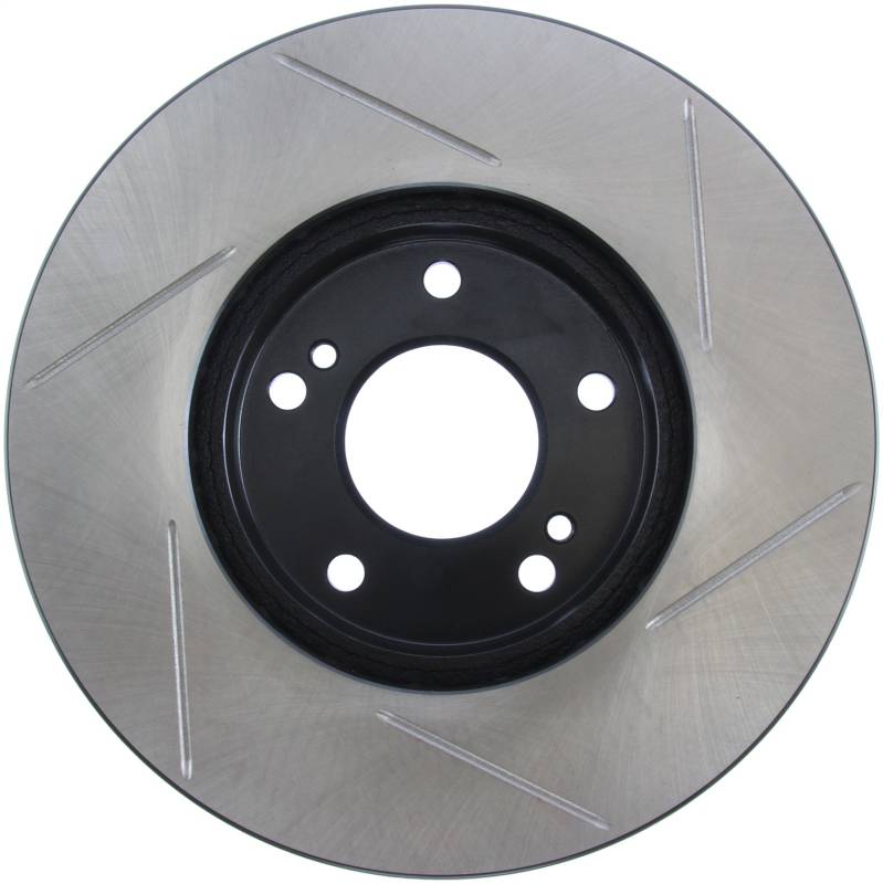 StopTech Slotted Sport Rotors are 1-piece direct replacement brake discs for factory brake systems and stock calipers that look great behind your wheels - and offer significantly improved braking performance. The unique slotting aids with heat and brake dust dispersal; prevents glazing of the pads; adds bite and improves wet and dry braking performance. Built to last; the black e-coating provides protection from corrosion and the high carbon metallurgy (in most applications) offers quieter operation; better crack resistance and increased performance.