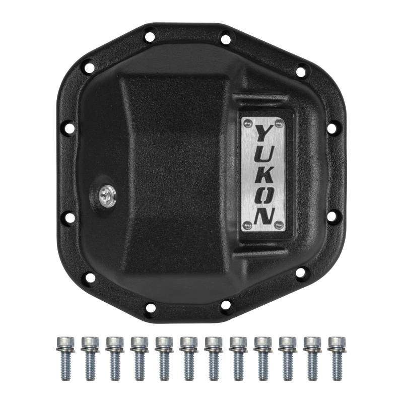 Yukon Hardcore Rear Nodular Iron Cover for Jeep Wrangler JL Dana 44 Rear Yukon Hardcore Diff Covers are constructed from thick-walled, high-strength nodular steel to protect lockers, gears and axles from the most extreme hits in off road driving. They also increase the structural rigidity of the differential, reducing deflection under high-torque situations that can put severe loads on vital internal parts. Yukon Hardcore Diff Covers feature a durable powder coat finish and high strength steel fasteners for easy bolt-on installation. It’s no secret that the underside of your rig can take a beating. Remember your diff! It’s the lowest hanging fruit and very susceptible to damage… crack or break it and you’re done for the day. Upgrade to a Yukon Hardcore Diff Cover and enjoy more peace of mind on the trail. Thick-walled nodular iron construction promotes housing rigidity Contoured inner surfaces circulate oil more rapidly for faster cooling Black powder coat finish adds durability and style Contrasting stainless-steel accent plate and cover bolts