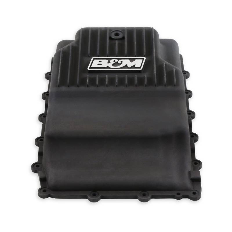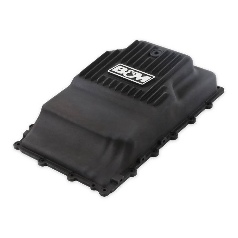 Our Hi-Tek deep transmission pans are constructed from A356-T6 aluminum and are cast with thick internal and external fins, adding additional strength and increased cooling properties. The deep pan design increases fluid capacity by 2 quarts over the stock O.E. pan. All these features combined help dissipate heat quicker netting lower transmission and fluid temperatures and prolonging the life of your transmission, transmission fluid, and corresponding components. Other features of this popular pan include a drain port with a magnetic drain plug for clean and easy servicing. Also includes a 1/8-inch NPT temperature sensor port for easily adding a temp gauge for monitoring transmission temperatures while daily driving, towing, or racing. Includes detailed instructions with all necessary hardware for an easy at-home installation. Note: 10R80 transmissions do not come with a dipstick from the factory to check the fluid level. As a solution, B&M offers an optional locking dipstick part #22200 to measure transmission fluid level.