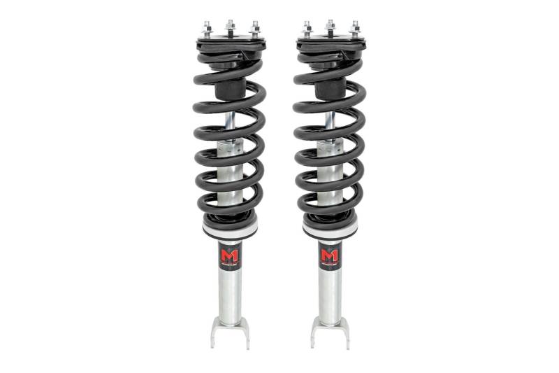 Improved Stance, Balance, and Handling. »If you want to improve your vehicle's on-road performance and off-road capabilities, Rough Country's M1 Loaded Strut Kits are the way to go. Our M1 Loaded Struts help stabilize your vehicle's movements, enhancing control when you turn, brake, accelerate or ride over uneven road surfaces. As an adjustable ride height strut, these M1's keep your suspension from overextending, providing a more consistent ride. Made for rugged off-road performance, our M1 monotube struts have a 46mm digressive piston for a more stable ride, preserving the smooth ride quality you need.\ Quality Construction. »Rough Country's M1 Loaded Struts have been engineered to give you the most reliable performance, increased driving comfort, and all-around performance for your vehicle. Made from 2" seamless extruded tubing and feature durable vulcanized natural rubber bushings. They're also zinc plated for resistance against the elements. Plus, they're adjustable in height. Utilizing multiple grooves in the strut body the spring perch can be raised or lowered. So whether you're looking to add a little extra clearance for off-roading or just want your ride to sit a little higher, our M1 Monotube Loaded Struts are the perfect solution.\ Installation and Warranty. This bolt-on installation requires just basic tools and about 2-3 hours to complete. Our Strut Kit is backed with a limited lifetime replacement warranty towards manufacturer defects. As such, the product is protected from structural and workmanship damage after the date of purchase. With our industry-leading warranty, give yourself peace of mind when using Rough Country's products!