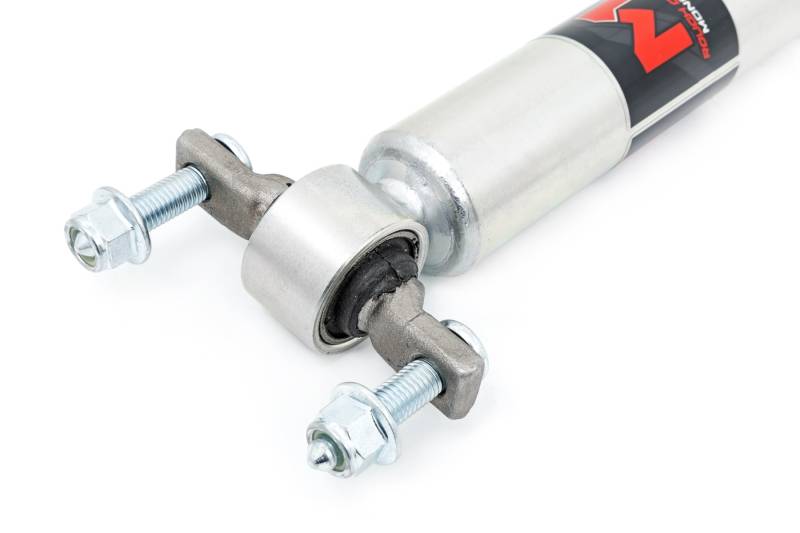 Whether you're tackling tough terrain or smooth city streets, Rough Country's Nitrogen-charged M1 Monotube Shock Absorber leads the way, delivering impeccable ride quality and performance mile after mile. Rough Country's Monotube M1 Shocks feature an internal floating piston design that keeps the shock oil and high-pressure nitrogen separate. The result is a lightning-fast reaction with no cavitation - just unbridled vibration damping at each and every obstacle. The M1 Monotube Shock Absorber is more than an upgrade - it's a true performance shock. Each shock features a steel body that is brushed and glavanized boasting a passivation sealing technology that is sure to withstand the elements. The internal 46mm digressive piston offers countless years of durability. The M1 is designed to be mounted body-up for a more interesting look on the vehicle.