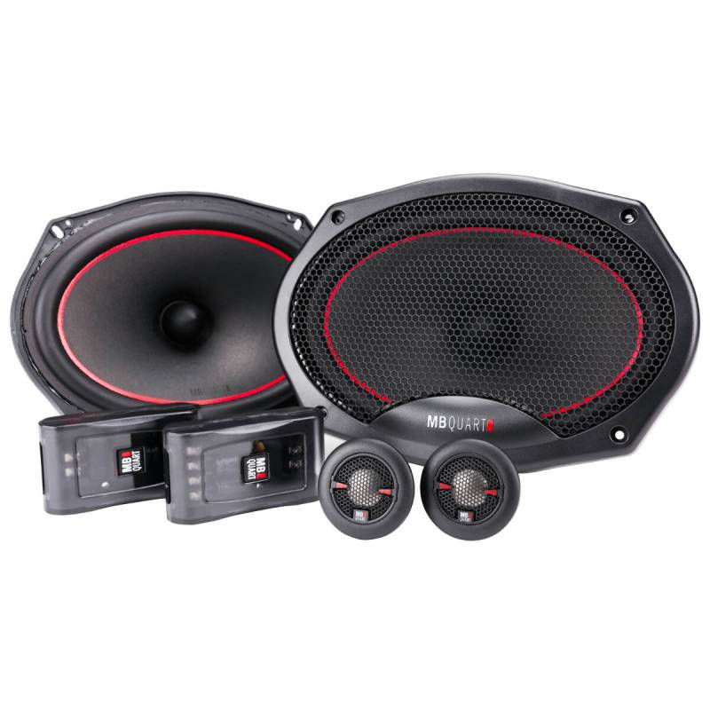 MB Quart 6x9" Reference Component 2-Way speakers engineered with .75" Titanium dome WideSphere Technology Tweeters with lightweight craft pulp Bamboo fiber cones mounted to an inert frame (which adds no harmonic distortions). The components system features an audiophile external crossover network.