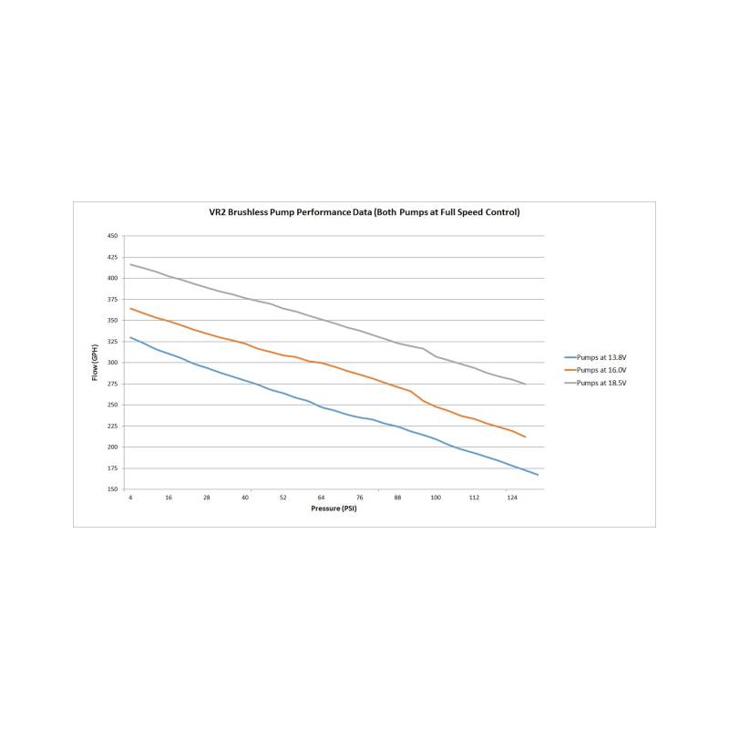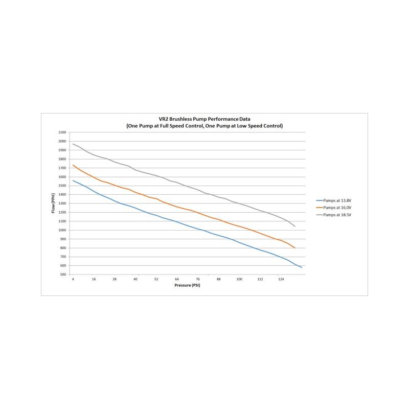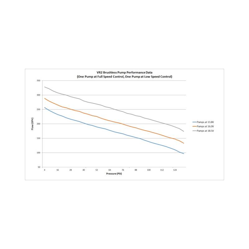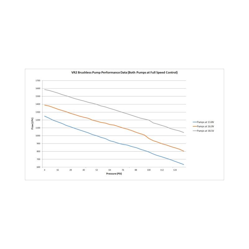 Holley set the bar in 2011 with the release of the HP and Dominator in-line fuel pumps. In 2015, Holley has raised the bar again with the introduction of the VR1 and VR2 Brushless in-line fuel pumps. Featuring brushless pump technology and a twin screw rotor design, the VR1 and VR2 in-line fuel pumps are capable of high pressures and flows while maintaining a low amperage draw and quiet performance. Designed to work on high boosted race cars as well as your daily driven weekend endurance car, these pumps work with gasoline, methanol, and E-85* (Compatible for methanol and E85 for competitive drag race use only- when draining and flushing after each race event) and can maintain pressures of 130 PSI and up to 335 GPH flow**. Fueled by TI Automotive.\nThe pumps include a 2 step controller for pump speed control.\nThe pumps can be ran in one of two different speeds. A low speed\ncontrol for low fuel consumption requirements or at full speed\nfor high fuel consumption requirements. The VR2 includes (2) controllers for precise control of both pumps independently of each other. Both the VR1 and VR2 pumps are proven for 18.5V compatibility.\n**At 13.8V\n* Overall pump dimensions: 9.5" Long; 4.75" Wide; 2.75" Tall