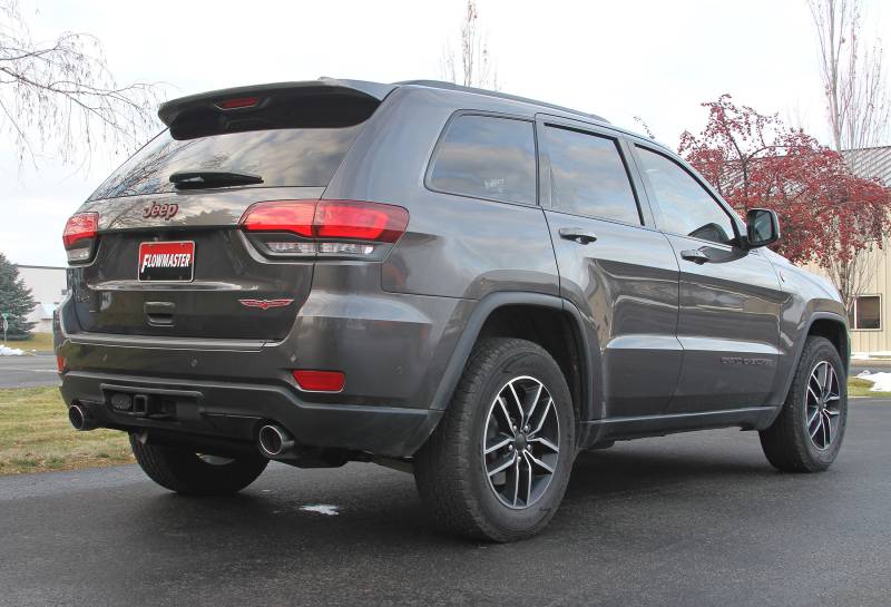 Flowmaster introduces our Force II stainless steel cat-back exhaust system for the 2011-2021 Jeep Grand Cherokees with the 3.6 and 5.7-liter engines. This system uses Super 50 series mufflers for a moderate to mild sound level and increased performance. Tuned resonators help keep the interior sound level low for a comfortable ride. Mandrel bent 409 stainless steel tubing allows for maximum exhaust flow and durability. A Scavenger X-pipe is used to increase torque and help control interior sound. This system uses larger 4.00-inch polished stainless steel tips for a custom look. All of the necessary hardware is included, and factory-mounting locations are used for an easy installation. Backed by Flowmaster's Lifetime Limited Warranty.