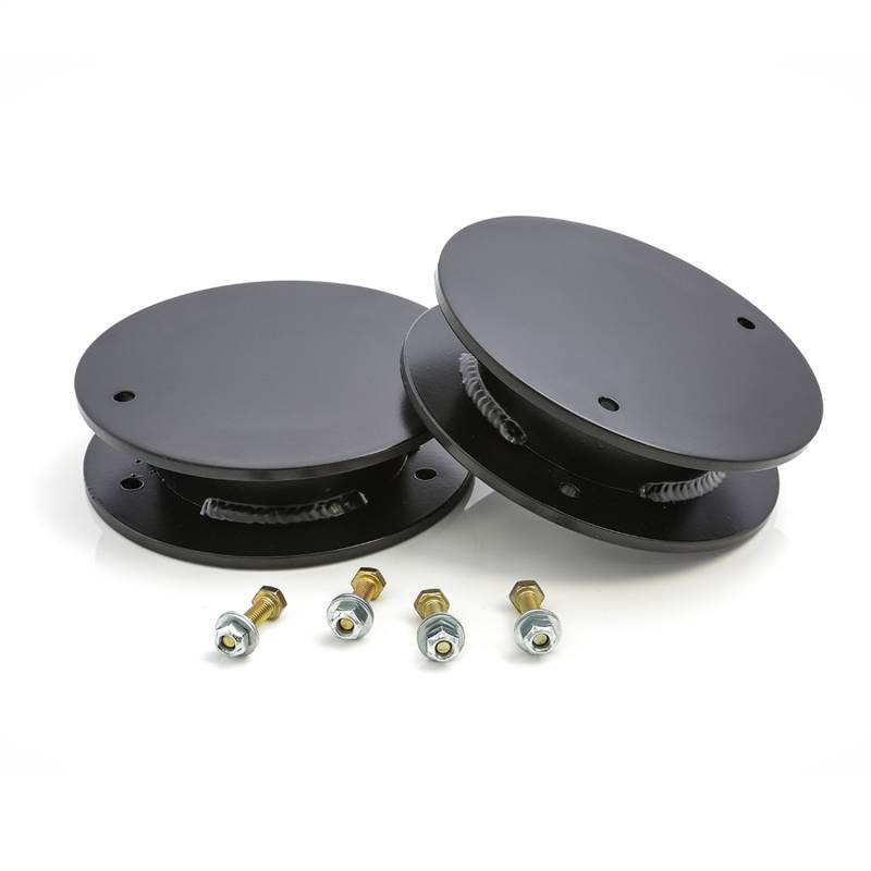 The 66-1302 Ram 3500 air bag spacer kit is designed for the stock supplemental load capacity air bag set ups. These vehicle come with an auto ride height adjustment for the rear of the truck when pulling or hauling heavy loads. The spacers are designed to fit 1" to 2" rear additional lift heights, mainly for use with our 1-2" rear block kit or our 3/2 or 4.5/2 lift kits. It is made of 1/4" mild steel plate and 1/4" wall mild steel tubing in a 2" deck height. The system on the truck is untouched so that the auto level is not effected by the addition of the blocks and spacers. This allows the added lift heights and keeping the same load capacity of the stock unit. Note: Not for Factory Air Suspension. Factory Air Suspension equipped trucks do not have leaf springs or coil springs. The rear of the vehicle is suspended with airbags only.
