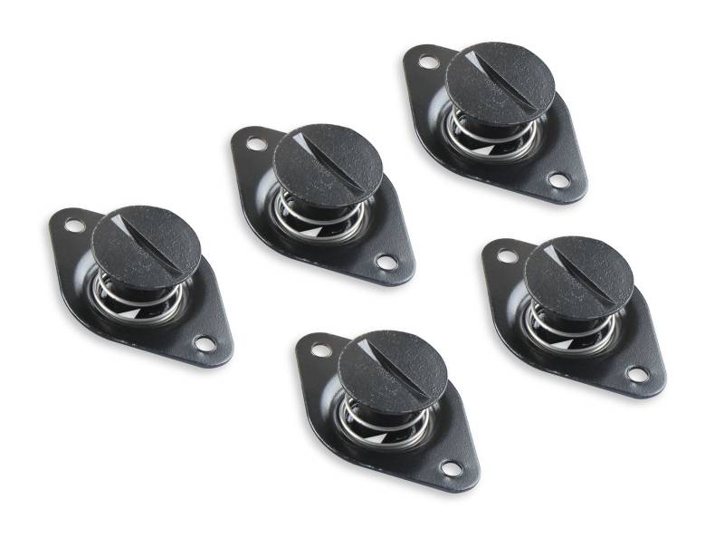 Earl's quarter turn fasteners are the ideal way to mount body work or access panels using a simple reliable method that allows quick removal & replacement. The 5/16" and 7/16" buttons will be available in self-eject, flush-mount, and button head styles. Various sizes and styles of springs and weld plates will also be available to complete the product line. These products will be launched as they become available. Sold 5 pieces per package. Made in the USA.