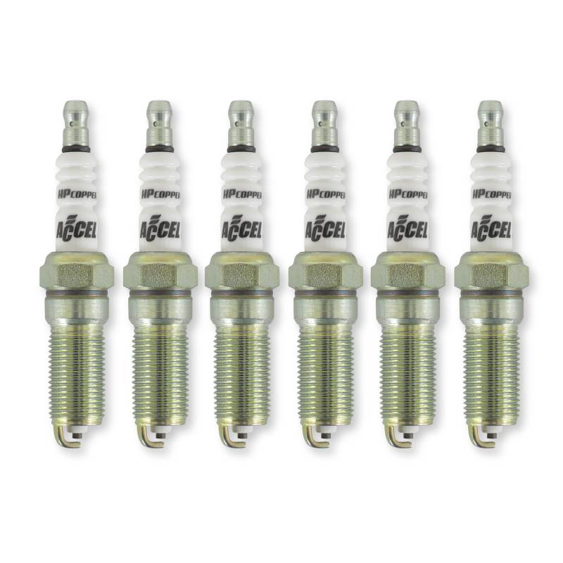 ACCEL HP Spark Plugs are made with a Copper core which is a better conductor than Platinum and Iridium. They deliver a stronger spark especially in high performance applications where high combustion pressures are present. Copper is much better at dissipating heat than other materials which lessens the chance of a misfire. ACCEL HP Spark Plugs are gapable allowing you to open the gap exposing a larger flame kernel or close it if needed for high boost applications. All ACCEL HP Spark Plugs have machine rolled threads allowing for a more precise thread engagement and torque retention.