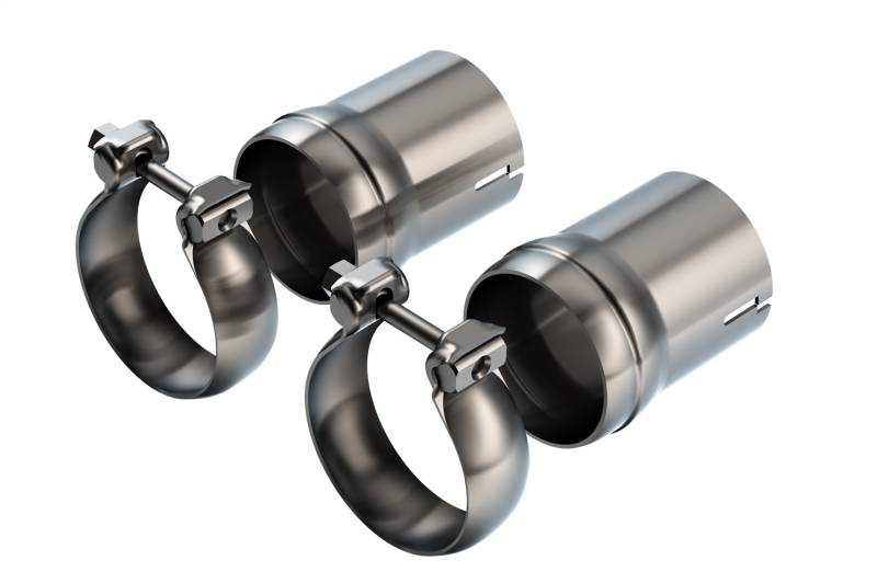 Adapter Kit Use these adapters that have Male Ball Flare Outlets with Borla(r) Cat-Back(tm) system 140723 and REUSE O.E. Tips that have a Female Ball Flare Inlet or optional Borla(r) tips 60729, 60729BC, 60729CFBA. Tips NOT included. Adapters have 2.75" I.D. Inlets. Contains 2) Adapters and 2) Clamps. Each adapter is built from premium T-304 stainless steel, superior to T-400 series knockoffs (such as 409), to give you the absolute best in performance and durability. Precision computer numerical control (CNC) manufacturing ensures an accurate fit. Best of all, Borla(r) stands behind every adapter with a Million-Mile Warranty. Just what you'd expect from the world's most experienced (and most winning) exhaust brand. Use with Borla(r) Cat-Back(tm) System 140723 and REUSE O.E. Tips with Female Ball Flare on Inlet or optional Borla(r) tips Reuse O.E. tips or optional Borla(r) tips 60729, 60729BC, or 60729CFBA Tips NOT included Contains (2) Adapters and (2) Clamps