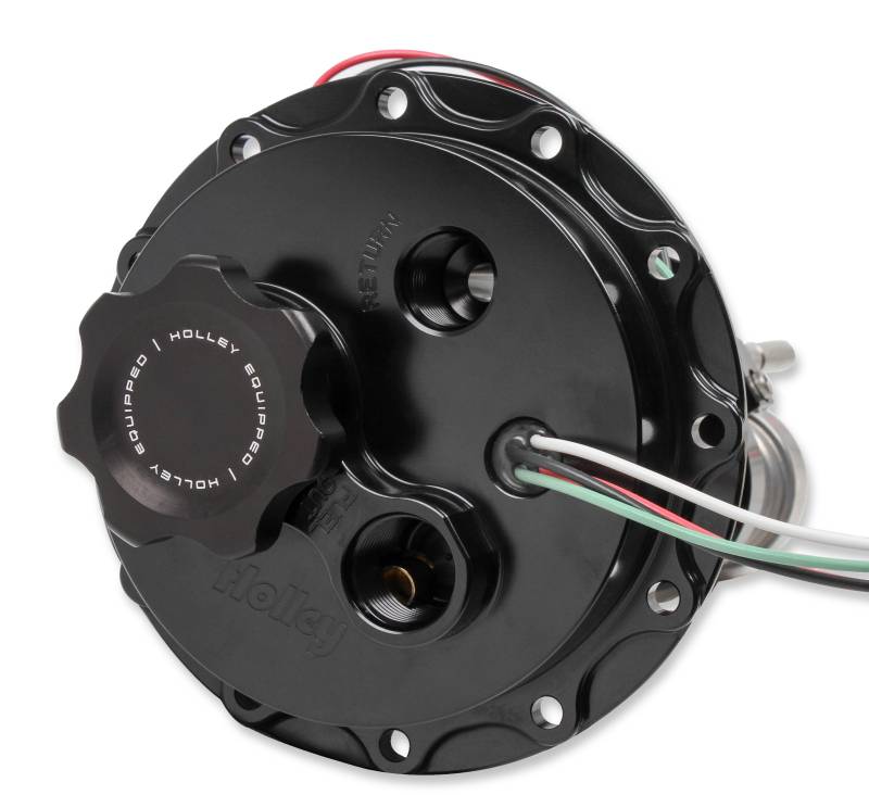 Updating your racing fuel system to EFI is so simple!\nHolley is excited to introduce our Holley Fuel Cell EFI Pump Modules. While the name includes EFI, these modules can be used as an upgrade for carbureted systems as well with the proper regulator. The modules were designed to drop in as a direct replacement for your existing 12 bolt flange fuel cell cap assembly. The billet top flange includes an 8AN inlet port, a 10AN outlet port, and a fuel filler cap. The fuel pump depth is fully adjustable from 7.5" to 12" deep. The EFI modules are available with single and dual 255 LPH and 450 LPH fuel pumps. The module kits include all the hardware to install into your existing fuel cell. All that you need to add is your fuel line.\n***Assembly fits common RJS, Jaz, Summit, Jegs, RCI, Speedmaster and Speedway fuel cells.\n***Supports up to 1750 EFI or 2200 Carb HP (@ 60 PSI at 13.5 Volts / 16.9 AMP Draw)
