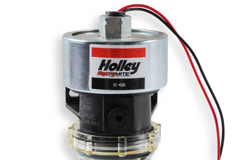 Holley Mighty Mite pumps are suited for tough, hard-working applications. From truck refrigeration units, marine generators, and gasoline and diesel industrial applications, these pumps have the proven performance, quality, and dependability that you can count on. They are self-priming and self-regulating at 9-11.5 psi and can deliver 33 GPH. Compatible with all types of fuels and additives, these pumps are the answer for your needs. Rugged solid state design pumps are a simple two wire hook-up and made in the USA. A regulator may be needed for carbureted applications requiring less fuel pressure. We recommend the Holley 12-803 or 12-804 fuel pressure regulator.