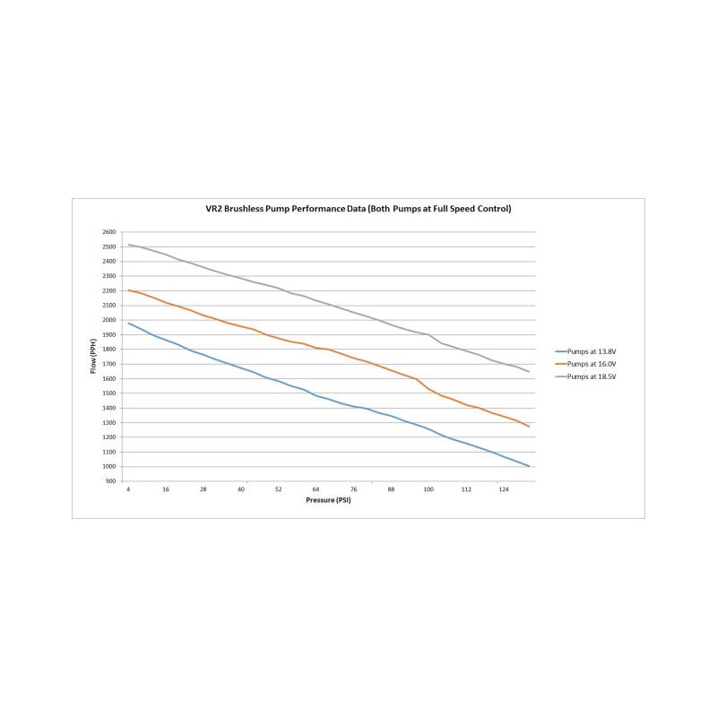 Holley set the bar in 2011 with the release of the HP and Dominator in-line fuel pumps. In 2015, Holley has raised the bar again with the introduction of the VR1 and VR2 Brushless in-line fuel pumps. Featuring brushless pump technology and a twin screw rotor design, the VR1 and VR2 in-line fuel pumps are capable of high pressures and flows while maintaining a low amperage draw and quiet performance. Designed to work on high boosted race cars as well as your daily driven weekend endurance car, these pumps work with gasoline, methanol, and E-85* and can maintain pressures of 130 PSI and up to 335 GPH flow**. Fueled by TI Automotive.\nThe pumps include a 2 step controller for pump speed control.\nThe pumps can be ran in one of two different speeds. A low speed\ncontrol for low fuel consumption requirements or at full speed\nfor high fuel consumption requirements. The VR2 includes (2) controllers for precise control of both pumps independently of each other. Both the VR1 and VR2 pumps are proven for 18.5V compatibility.\n**At 13.8V\n* Overall pump dimensions: 9.5" Long; 4.75" Wide; 2.75" Tall