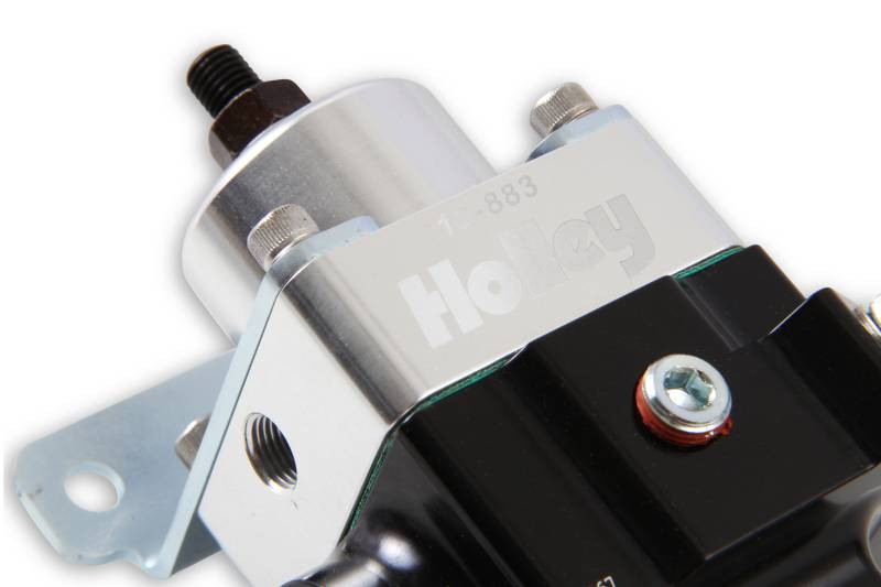Holley's new double adjustable fuel pressure regulators are designed for belt or cable driven pumps where fuel flow changes with engine rpm. These regulators are compatible with E85 and alcohol applications. Made from billet aluminum, these regulators are offered in both 2-Port and 4-Port models to complete your fuel system requirements.\nThe idle adjustment design is strategically placed so that none of the ports are blocked like other designs. These regulators retain the true 2 and 4 port flow.\n• Alcohol and E85 compatible.\n• 2 Port models available with 8AN and 10AN port size