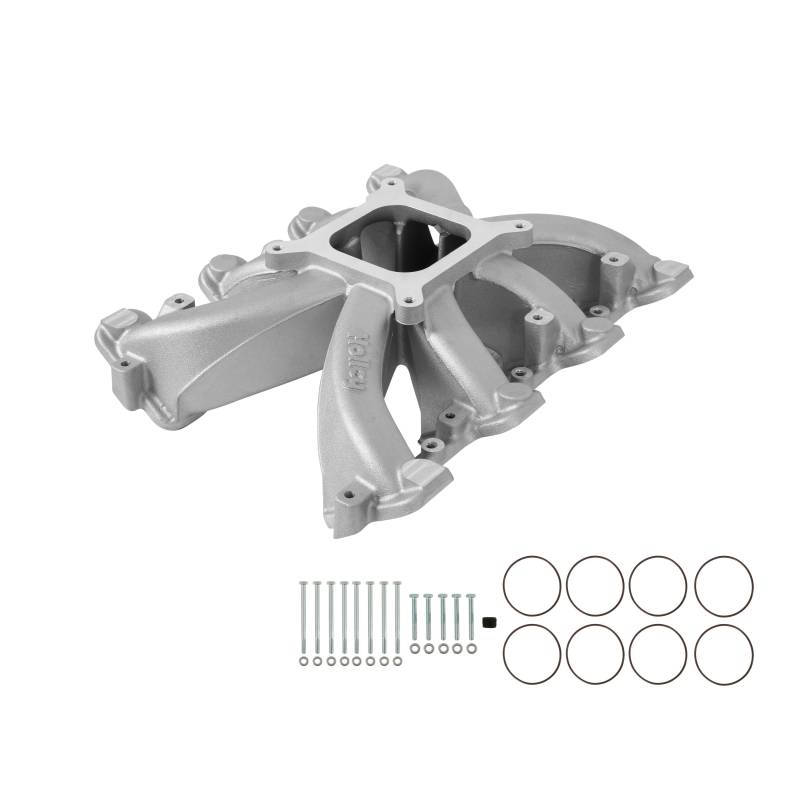 Carbureted single plane intake manifold. Fits all GM LS Gen III or IV engines equipped with LS1/LS2/LS6 style cathedral port cylinder heads