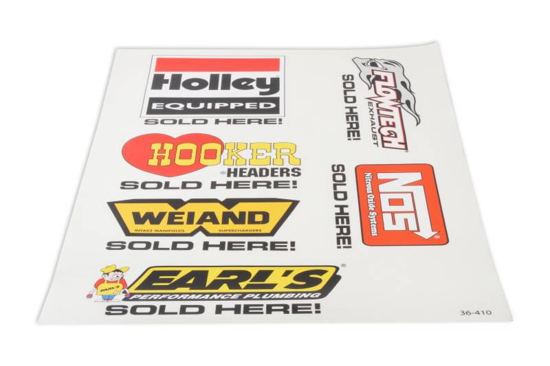 This Holley Brand decal sheet is top quality and stick easily to most surfaces. 13" x 18" Holley Brand Sold Here decal sheet contains 6 decals.