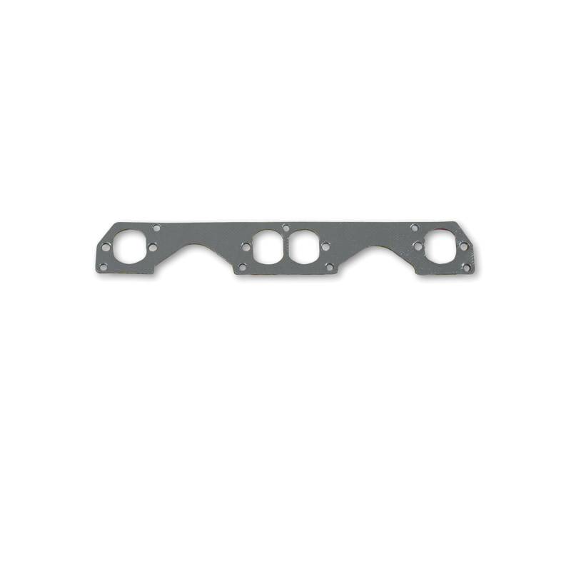 Hooker's precision-matched Super Competition header gaskets provide a sure fit and unmatched exhaust sealing. This OEM quality gasket is constructed of a thick (.060") high temperature, synthetic hi-temperature gasket material with a perforated steel core, which provides a superior grip and adhesion. This construction also contributes to exact fit compliance between the cylinder head and header flange, offering excellent sealing properties during extreme temperature and operating conditions.