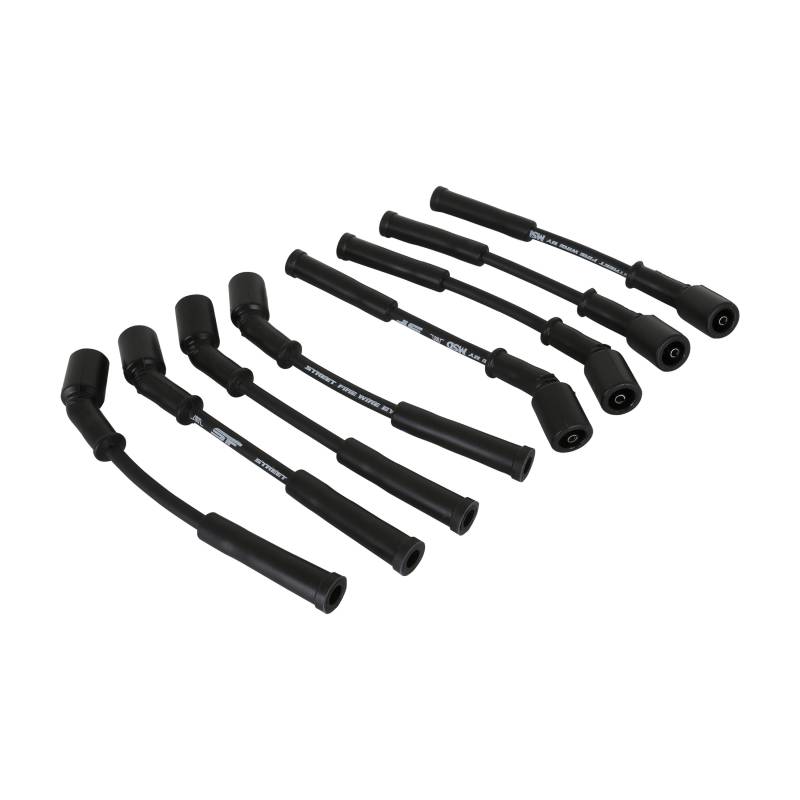 The Street Fire Spark Plug Wires feature a low resistance conductor that's wrapped in a sleek and durable black sleeve. The terminals are covered in black boots that protect the conductor from engine heat to ensure spark delivery.